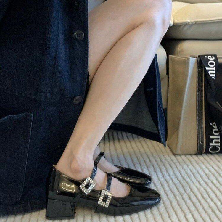 2024年新款中跟高跟玛丽珍鞋子女春夏季粗跟单鞋一字扣带包头凉鞋