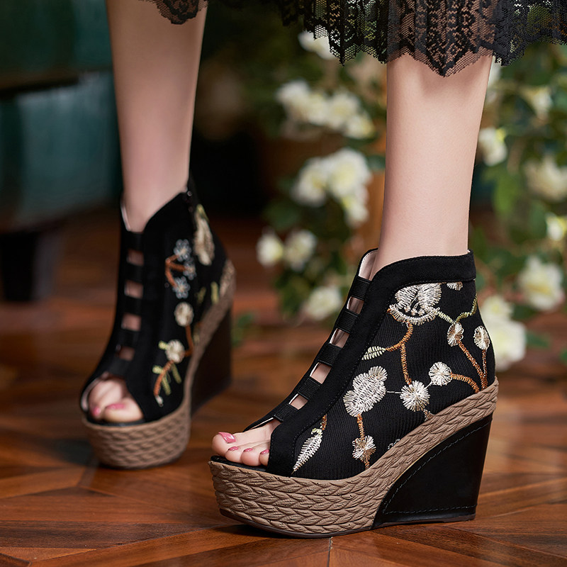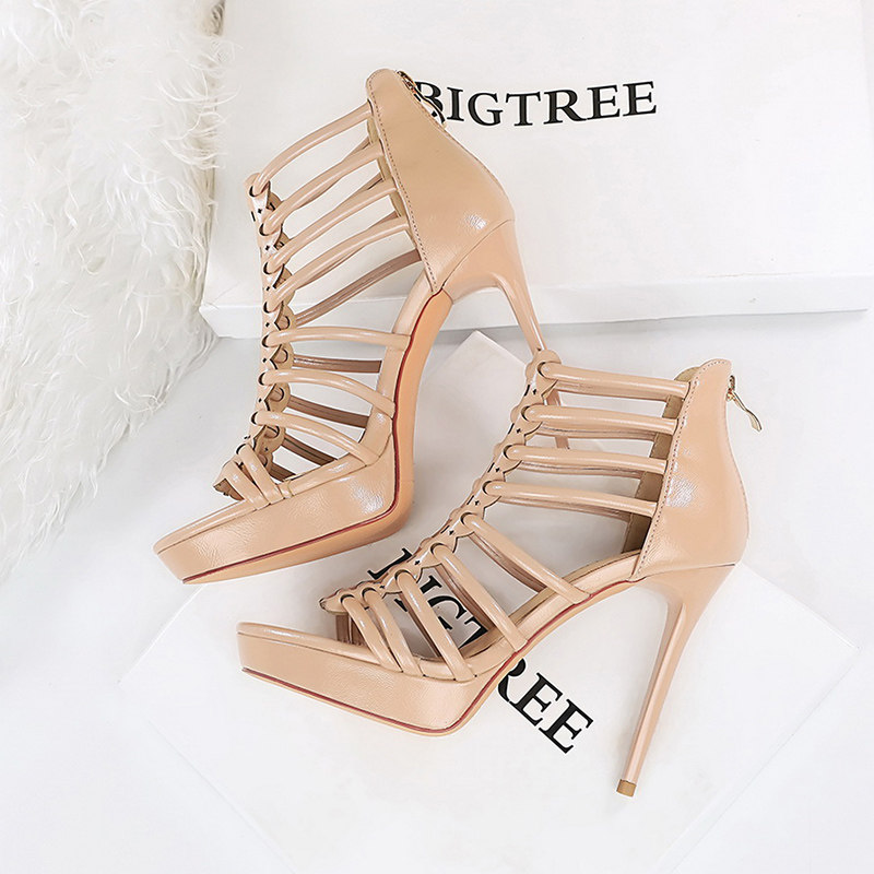大气罗马鱼嘴高跟鞋2023夏季新款厚底凉靴女高帮防水台高跟凉鞋女
