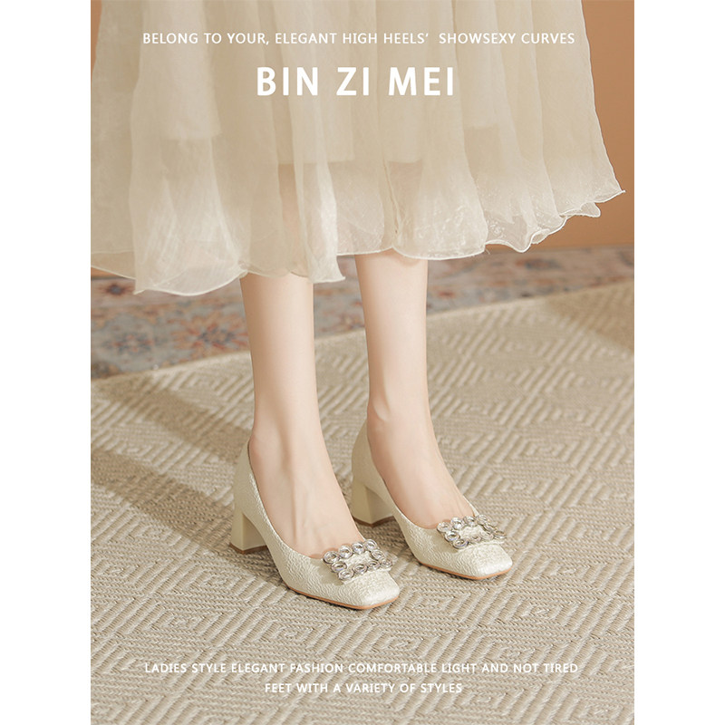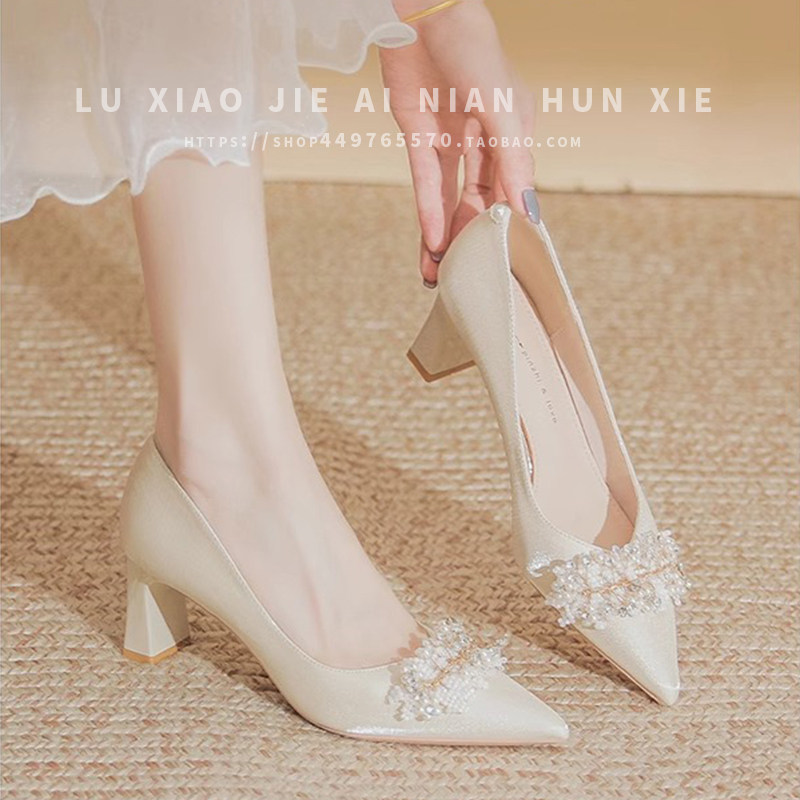 米兔小姐【以梦泛舟】白色绸缎汉服婚鞋新娘鞋高跟鞋高级感旗袍鞋