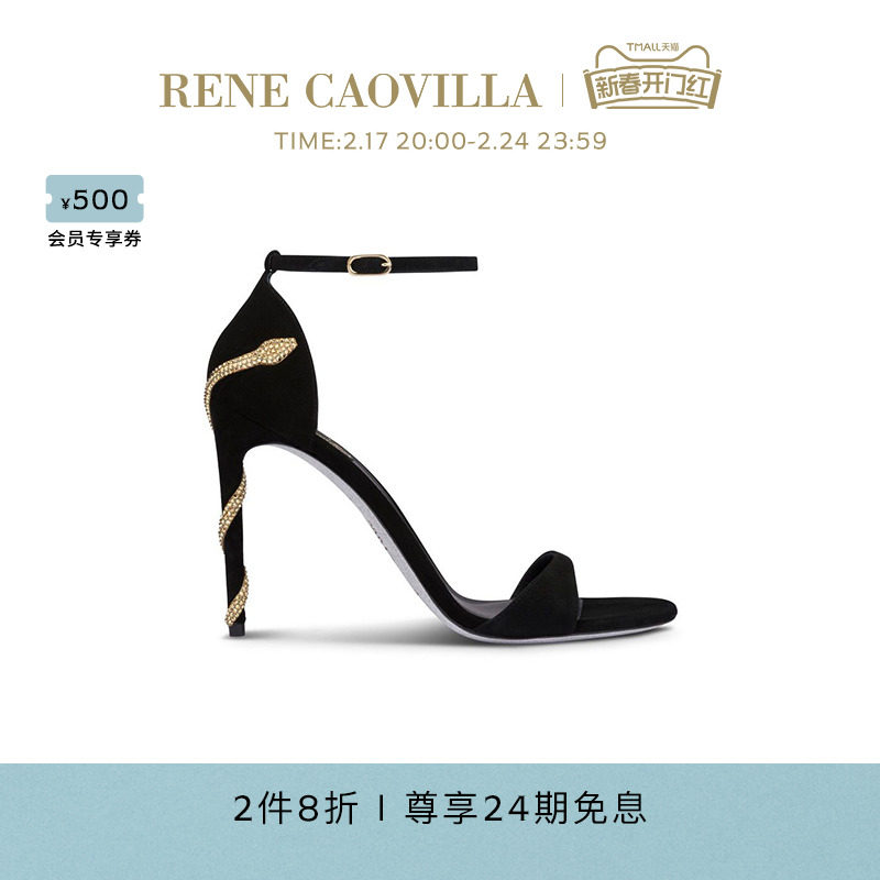 JadyRose夏季2023粗跟罗马凉鞋女腕带彩色水晶跟蛇纹高跟鞋走秀款
