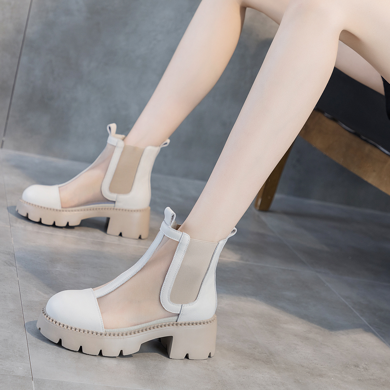 欧货鱼嘴高跟鞋2024夏季新款厚底凉靴女真皮防水台高跟凉鞋女粗跟
