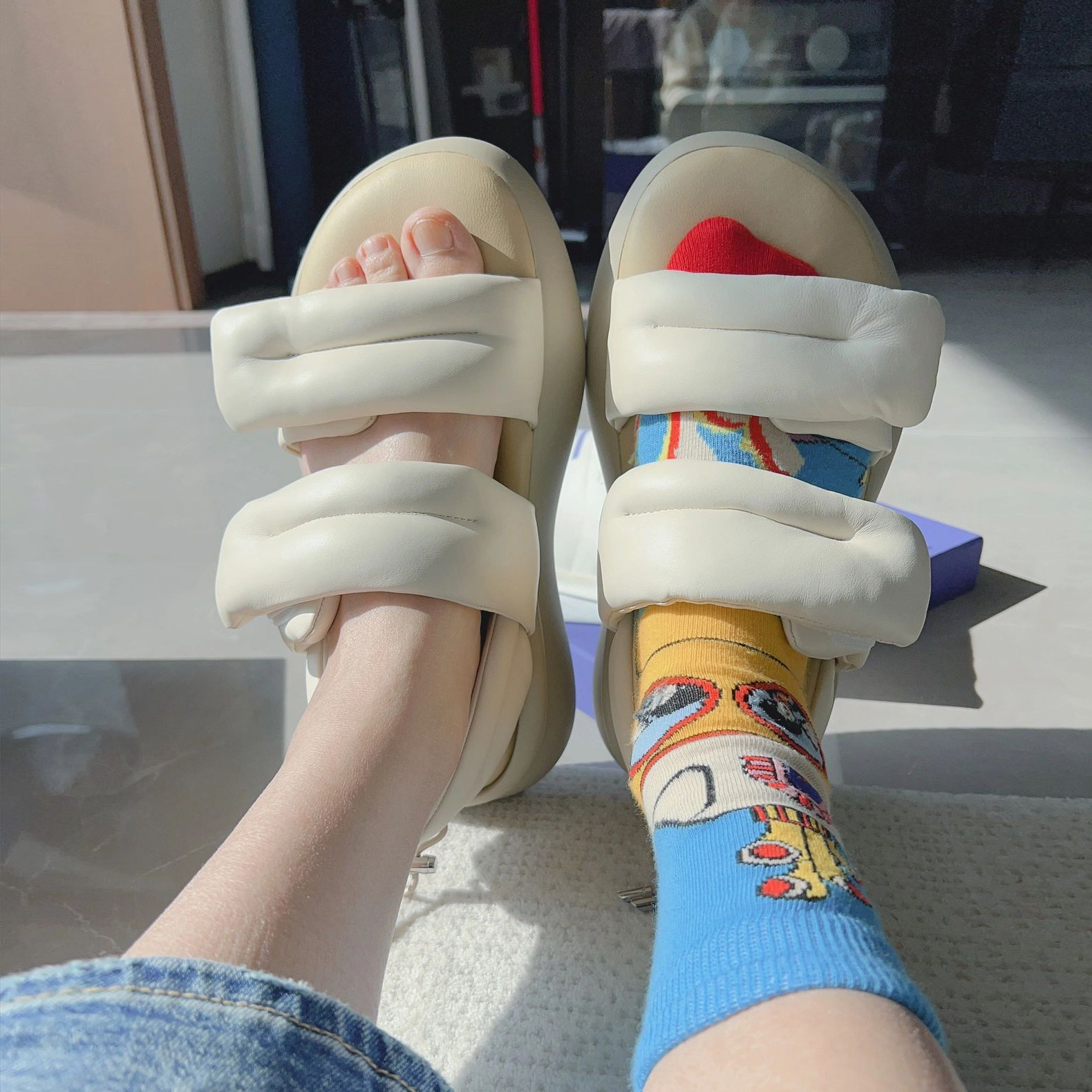 7or9沙发系棉花糖凉鞋设计感小众女一字式扣带舒适百搭方跟高跟鞋