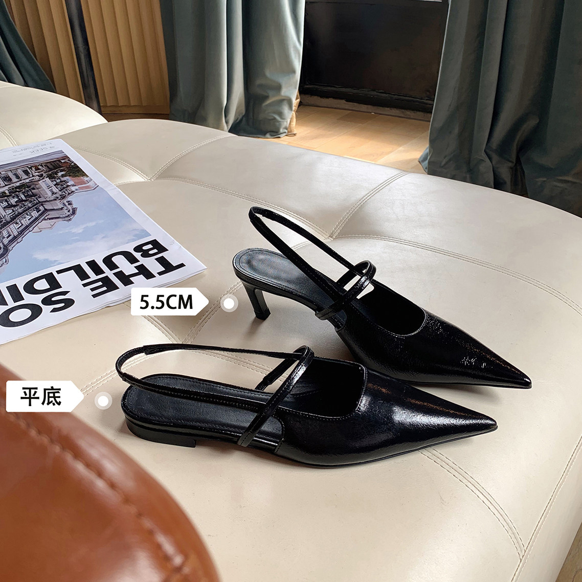 绝美法式~!Vintage复古裸色尖头高跟鞋细跟单鞋后空包头罗马凉鞋
