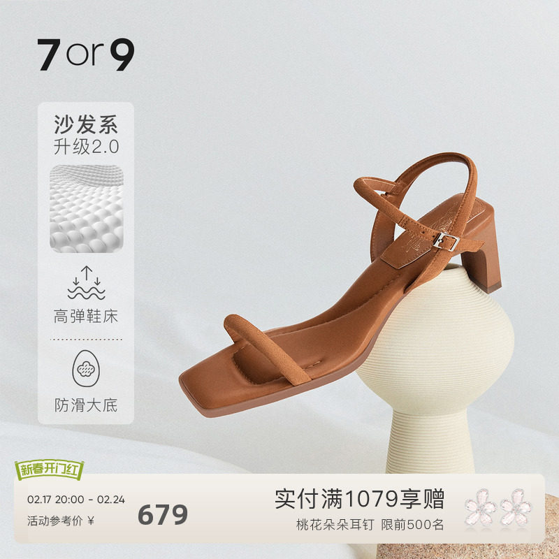 7or9蒙布朗法式高跟鞋一字带2023年新款时装凉鞋百搭一字扣沙发系