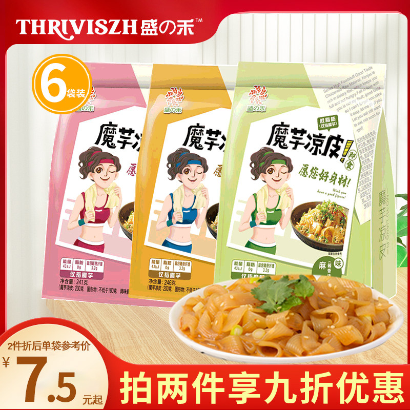 盛之禾魔芋凉皮6袋即食饱腹代餐3种口味免煮粉丝零食速食魔芋面皮