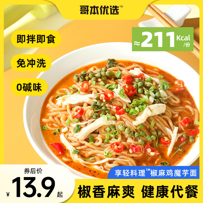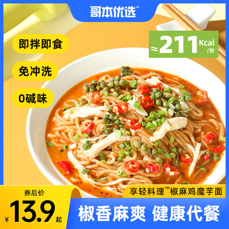 魔芋面免煮即食椒麻鸡味凉皮粉0低减卡热量脂肪肥代餐主食零食品
