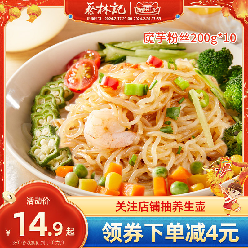 蔡林记0脂肪魔芋粉代餐主食即食轻食方便速食粉丝低卡冲泡魔芋面