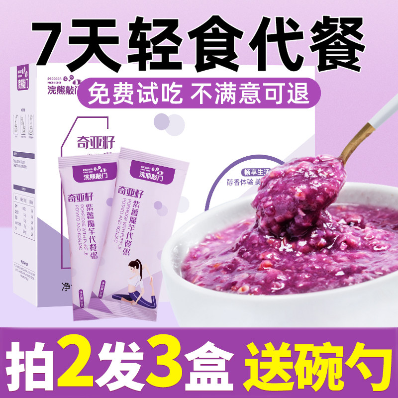 低脂奇亚籽紫薯魔芋代餐粥粉饱腹食品奶昔早餐速食减粗粮主食肥脂