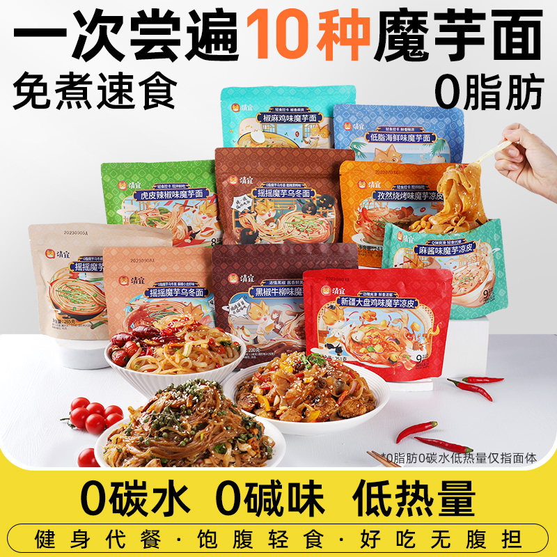 魔芋面0脂肪0热量面体魔芋粉凉皮减代餐低脂零食免煮即食饱腹主食