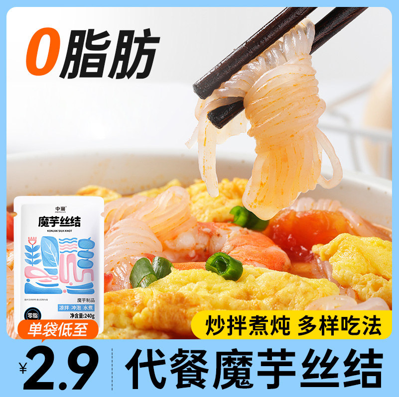 魔芋丝结0脂代餐火锅关东煮配菜食材魔芋面凉皮粉丝饱腹方便速食