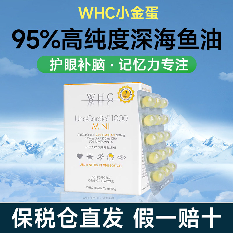 比利时WHC鱼油小金蛋深海鱼油小千金mini维生素D补脑润眼60粒胶囊