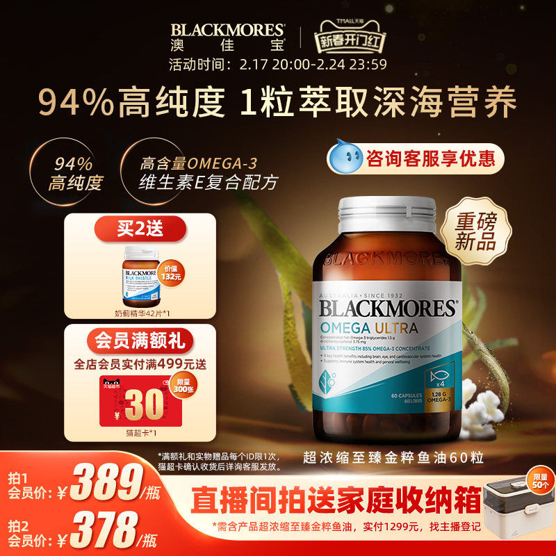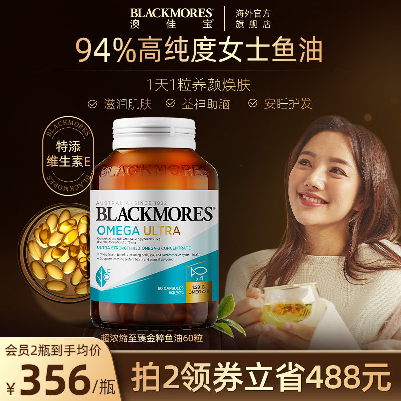 BLACKMORES澳佳宝金粹鱼油omega3深海鱼油维生素e软胶囊女生鱼油