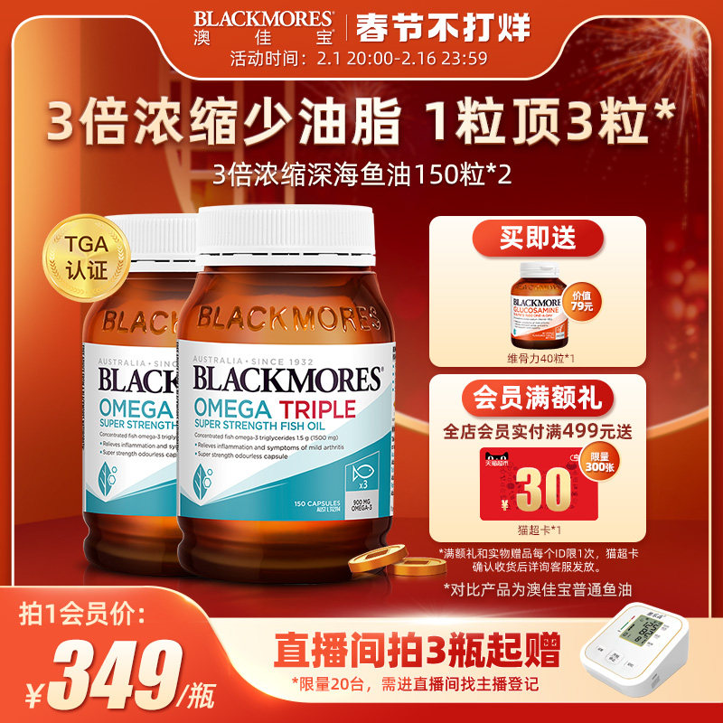 BLACKMORES澳佳宝3倍omega深海鱼油欧米伽软胶囊*2澳洲