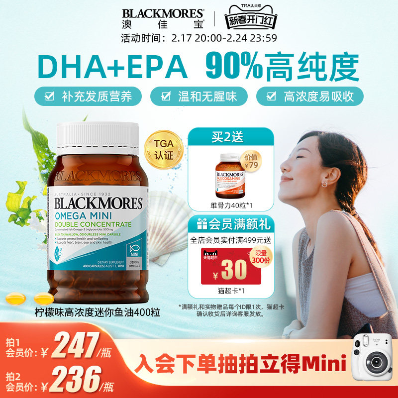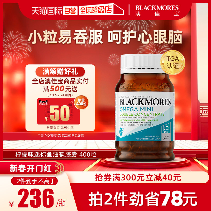 【自营】BLACKMORES澳佳宝柠檬味高浓度迷你鱼油400粒