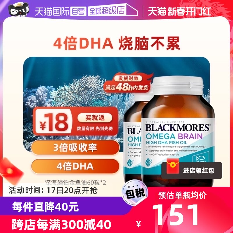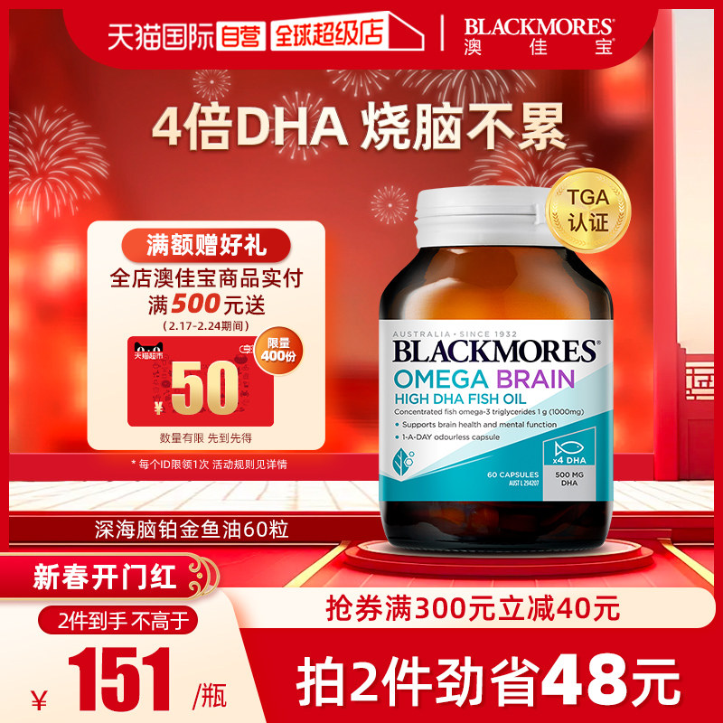 【自营】BLACKMORES澳佳宝高浓度4倍DHA深海脑铂金鱼油 omega-3