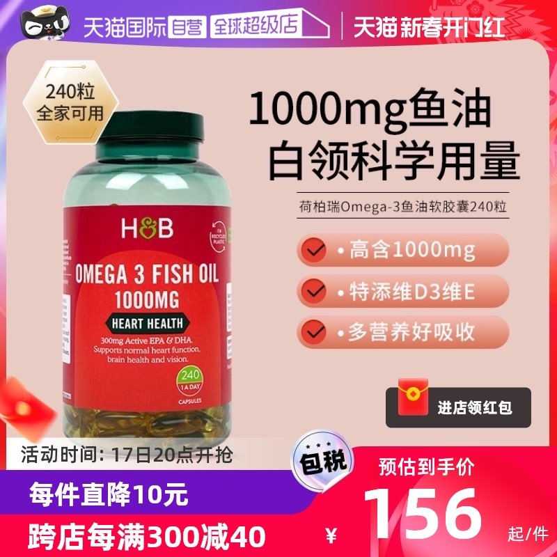 【自营】英国hb荷柏瑞深海鱼油软胶囊omega高浓缩DHAEPA240粒吸收
