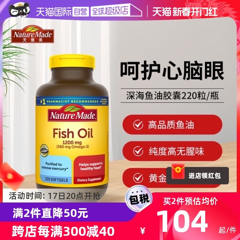 NatureMade天维美深海鱼油软胶囊美国进口dha非鱼肝油220粒*2