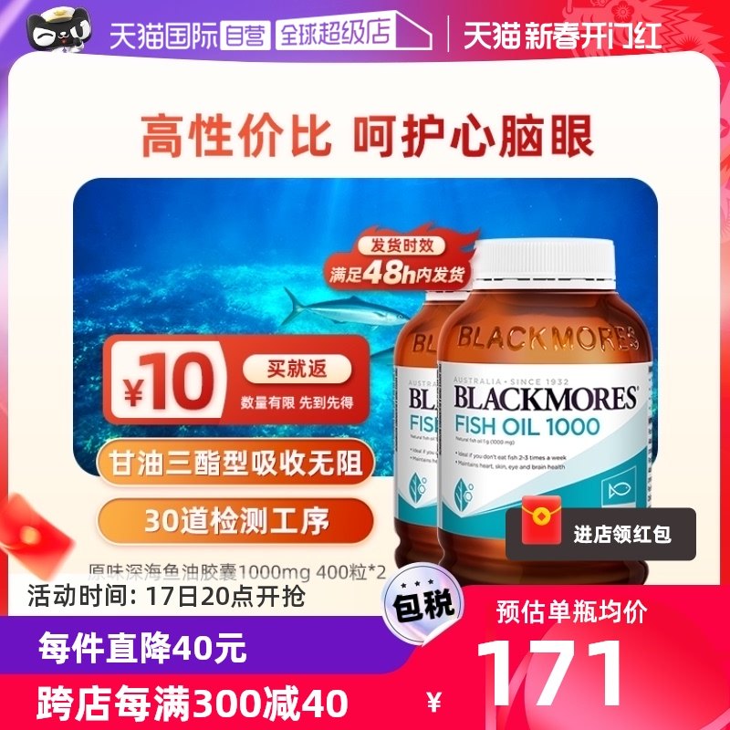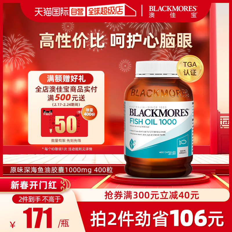【自营】BLACKMORES澳佳宝原味深海鱼油软胶囊400粒