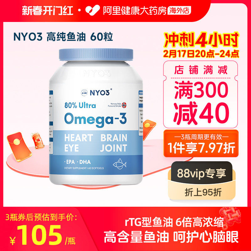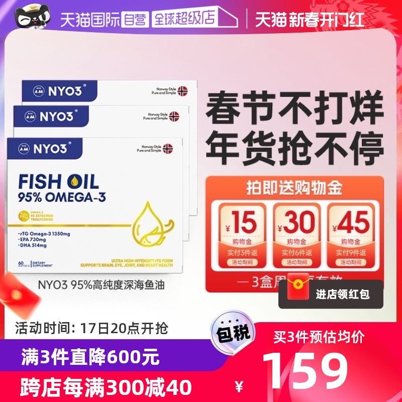 【自营】NYO3诺威佳挪威95%高纯度鱼油omega3深海鱼油成人软胶囊