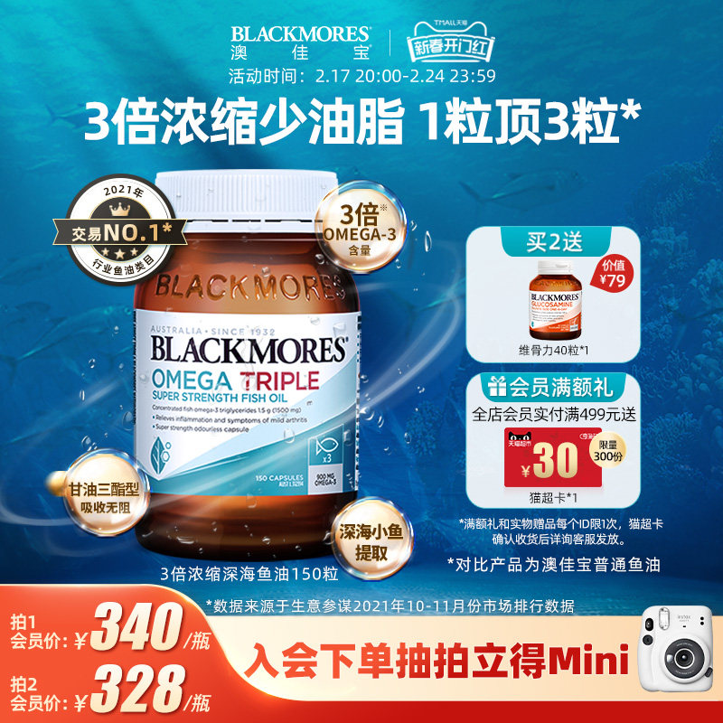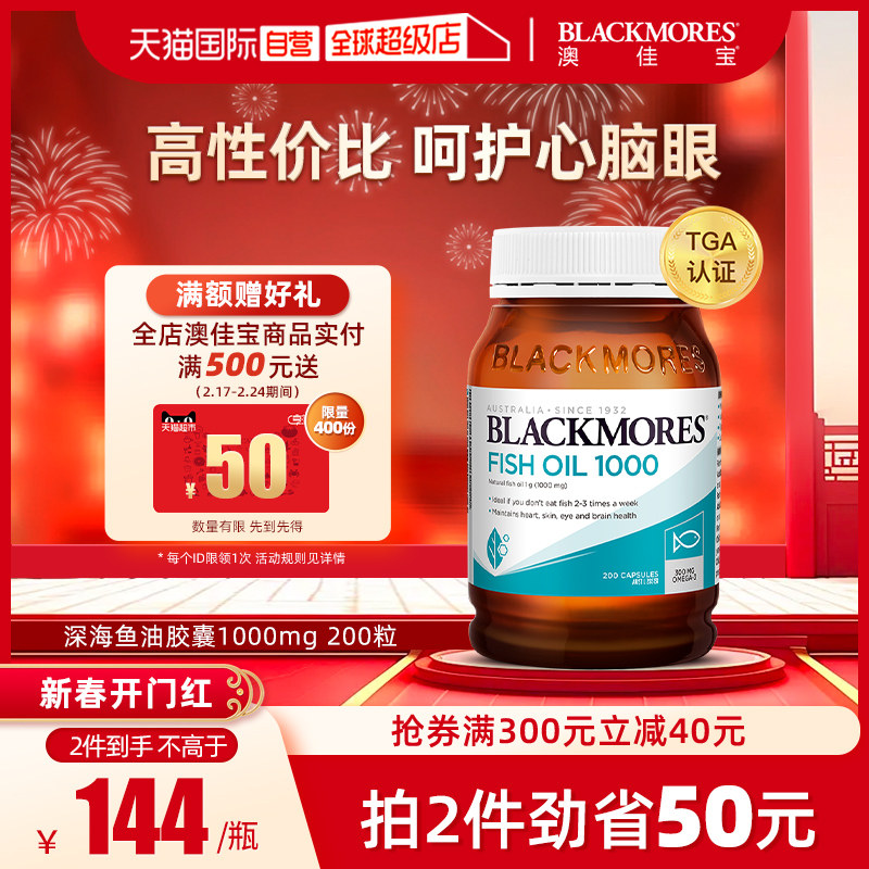 BLACKMORES澳佳宝鱼油omega3深海鱼软胶囊无腥味欧米伽3成人澳洲