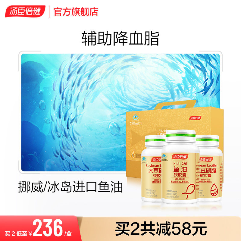 年货礼盒汤臣倍健鱼油软胶囊大豆磷脂中老年人辅助降血脂旗舰店