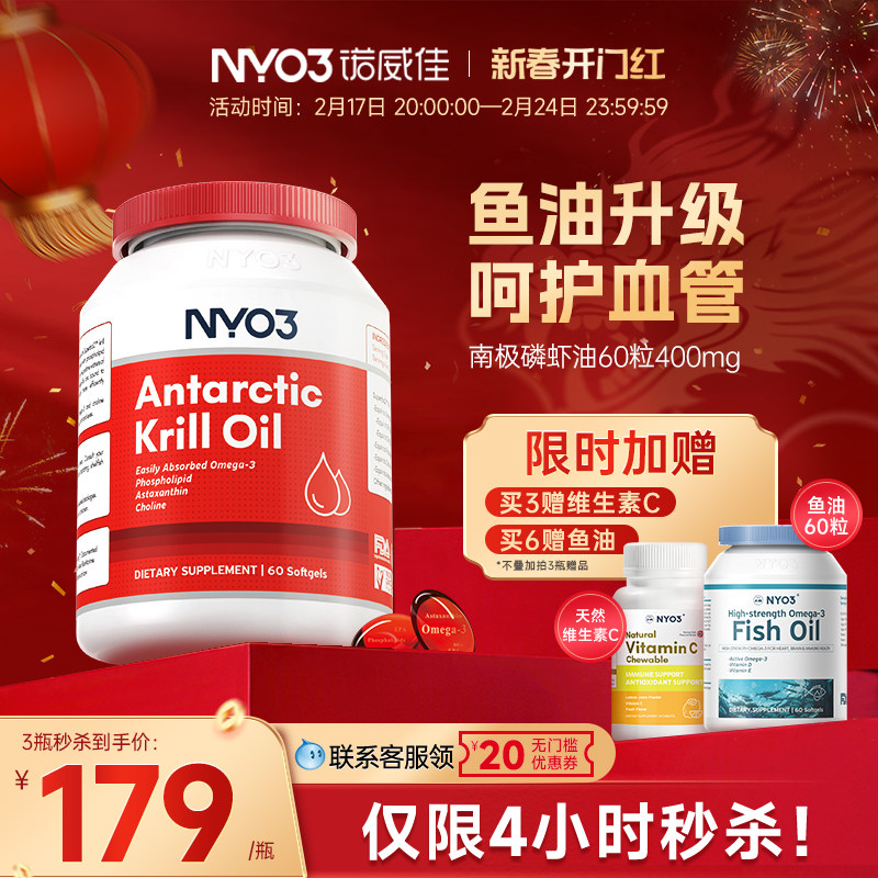 NYO3纯南极磷虾油软胶囊鱼油升级omega-3低密度中老年虾青素60粒