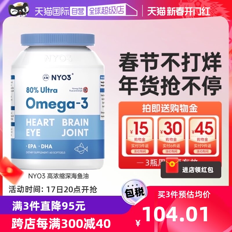 【自营】NYO3挪威高浓缩深海鱼油omega3非鱼肝油学生记忆力软胶囊