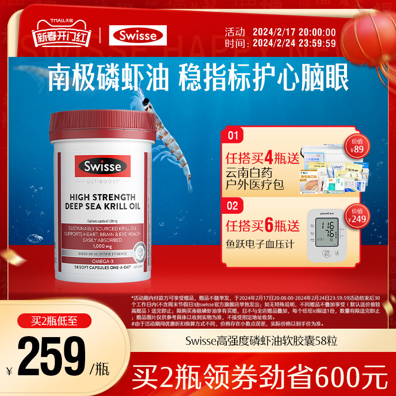 Swisse斯维诗高强度南极磷虾油58粒omega3深海鱼油升级进口中老年