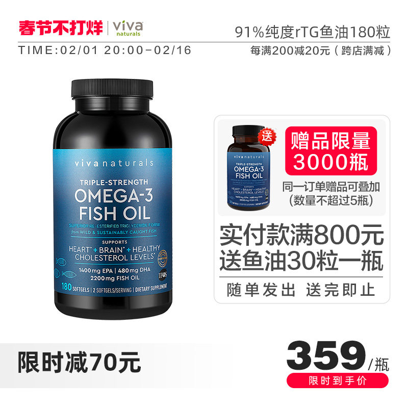 Viva进口高纯度深海鱼油3倍浓缩天然omega3欧米伽3软胶囊180粒