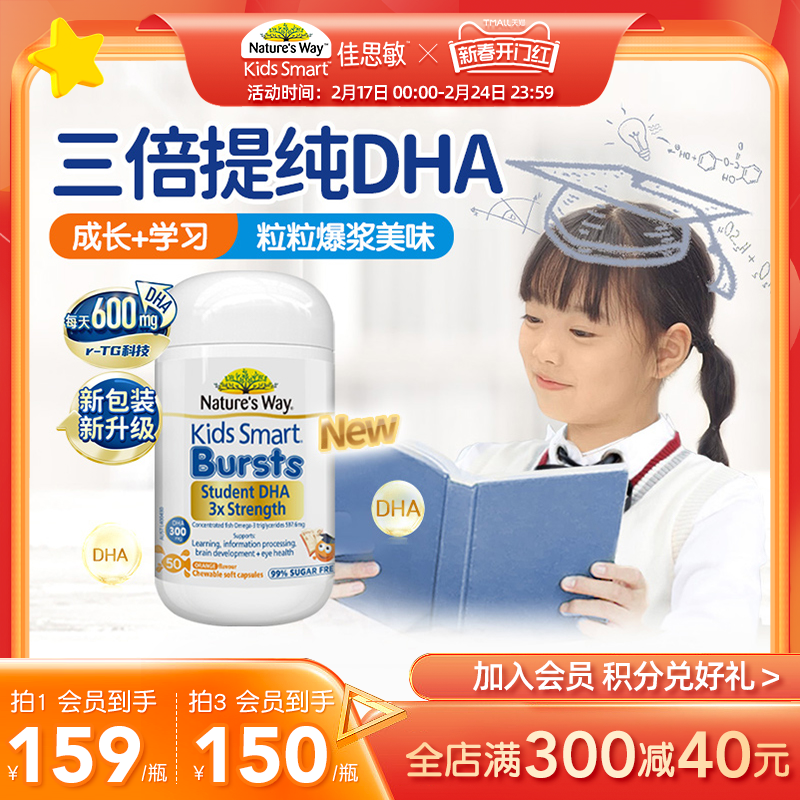 澳洲佳思敏儿童3倍DHA学生藻油青少年备考鱼油增强补脑学习记忆力