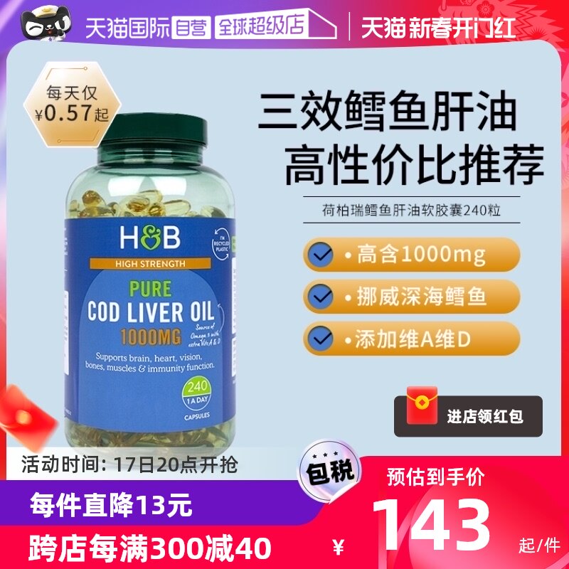 【自营】英国hb荷柏瑞鳕鱼肝油鱼油软胶囊omega3成人dha240粒官方