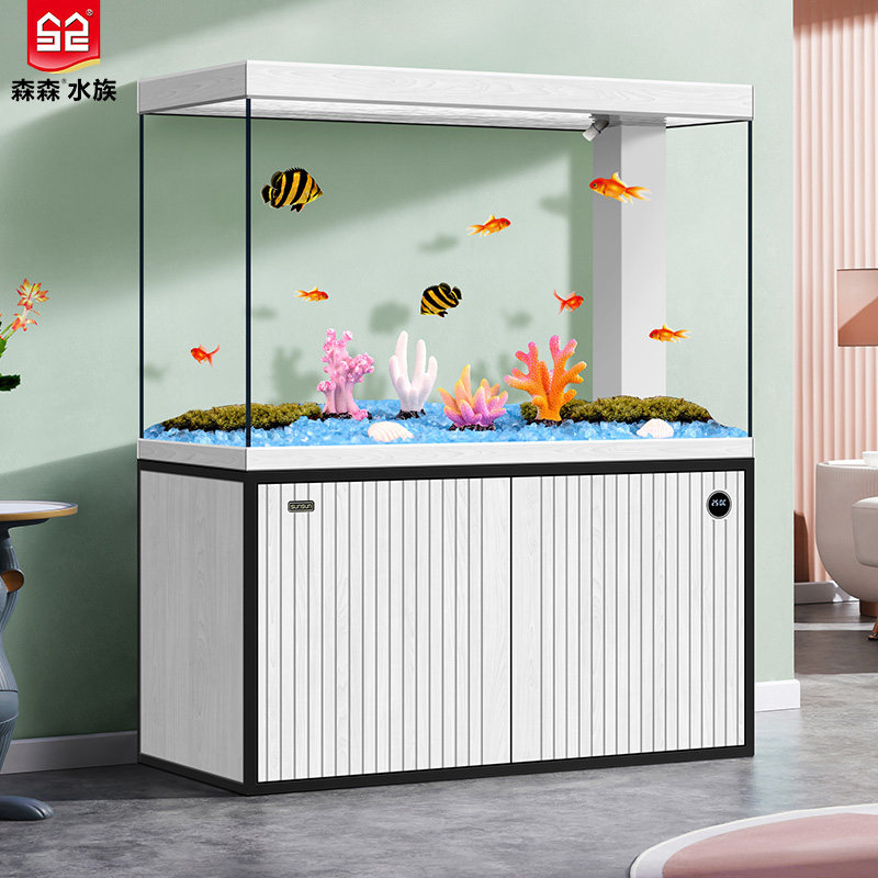 森森鱼缸客厅智能生态落地家用2023新款玄关大型超白底滤水族箱