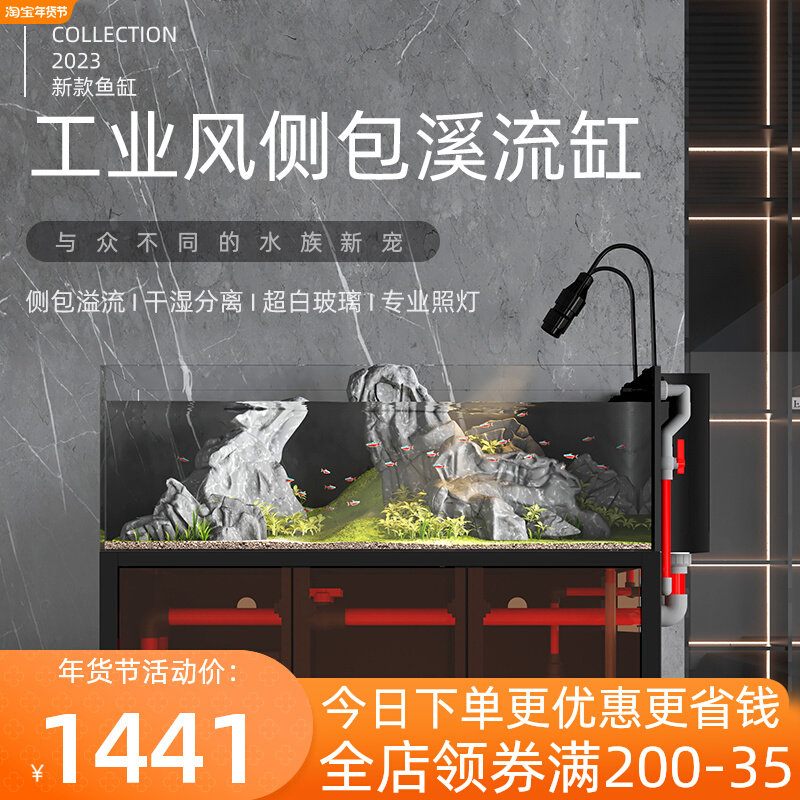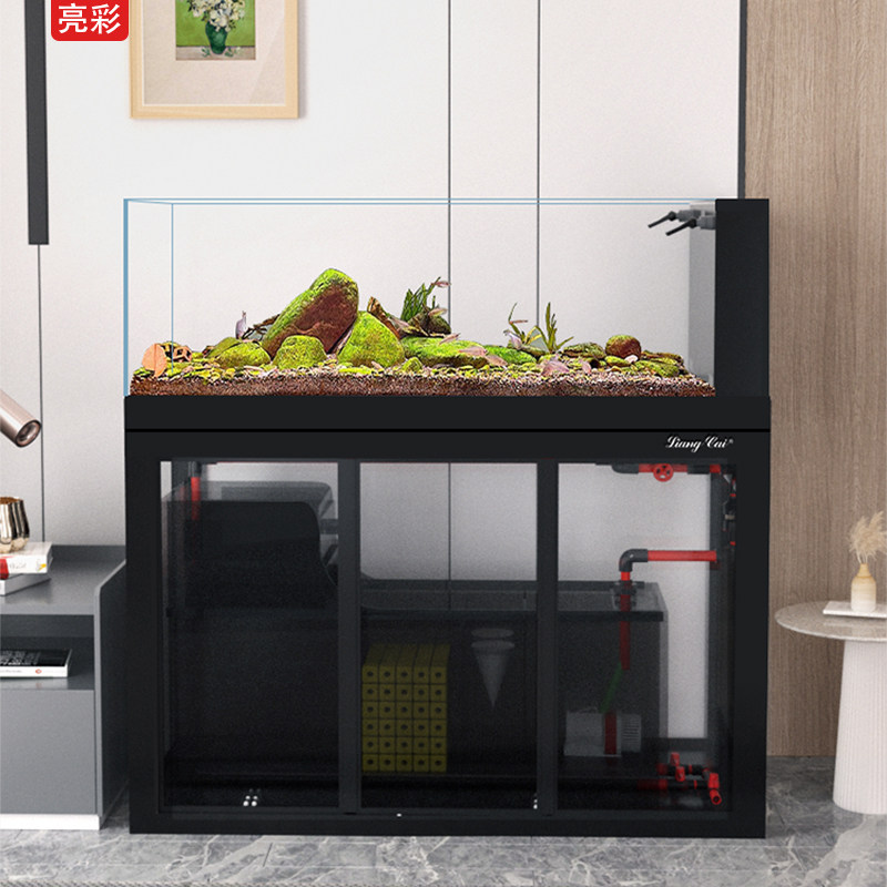 亮彩水草缸水族箱灰玻底滤造景超白标配版溪流缸侧溢流工业风鱼缸