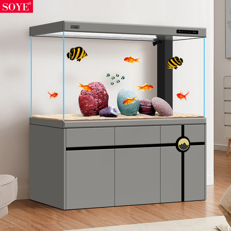 小鱼缸家用客厅生态超白制氧增氧过滤电视柜旁懒人底滤水族箱底柜