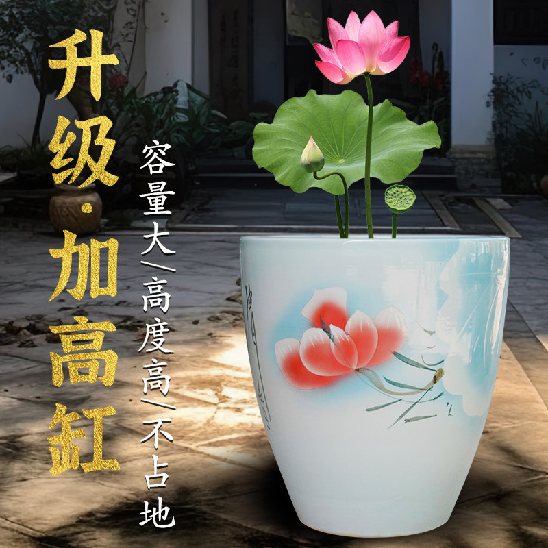 景德镇陶瓷鱼缸大号养荷花睡莲盆乌龟水缸庭院客厅书房摆件书画缸