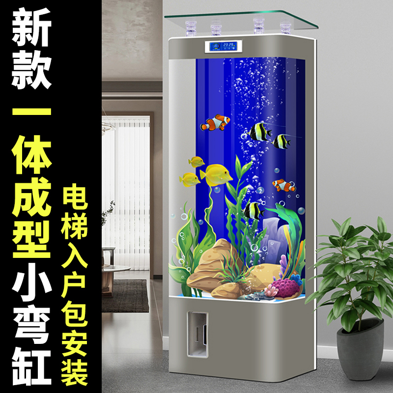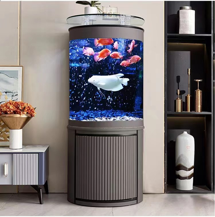2023新款家用半圆形玻璃金鱼缸靠墙客厅免换水生态底滤落地水族箱