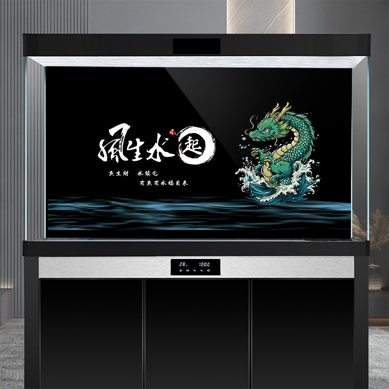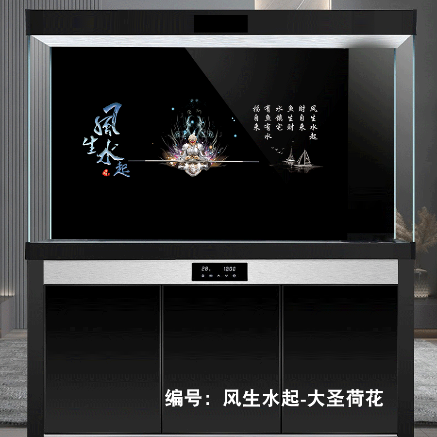 定制鱼缸背景黑色贴纸背景纸画高清图5d膜3d纯黑风生水起大圣荷花