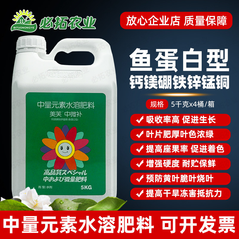 日本鱼蛋白型微中量元素水溶肥料钙镁硼锌铁锰铜叶面肥喷冲施肥料