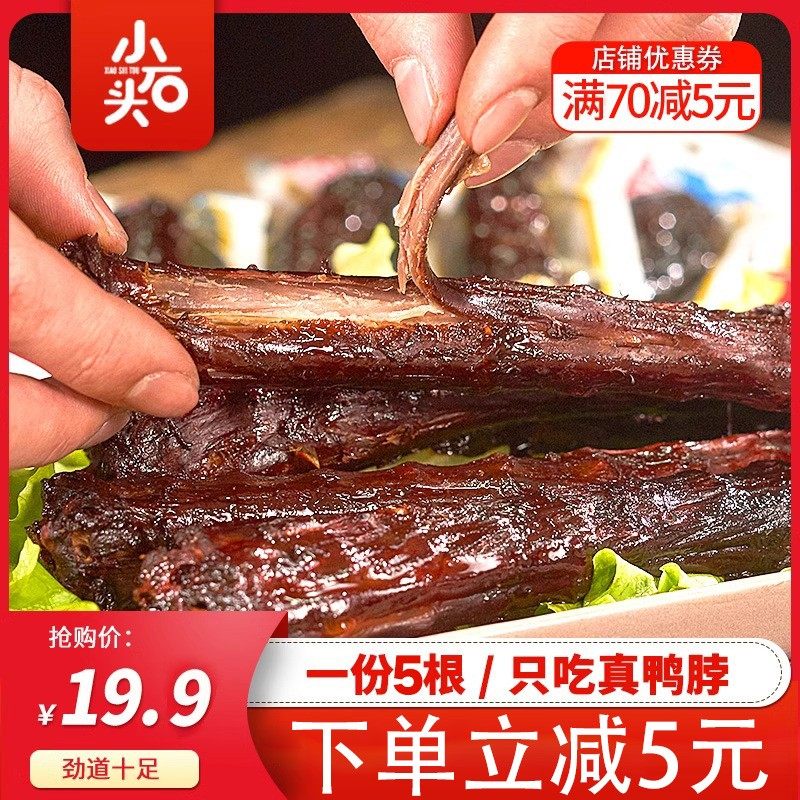 小石头鸭脖子风干辣味麻辣鸭脖整根手撕小零食小吃休闲食品真空装