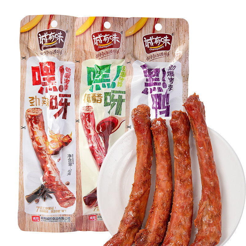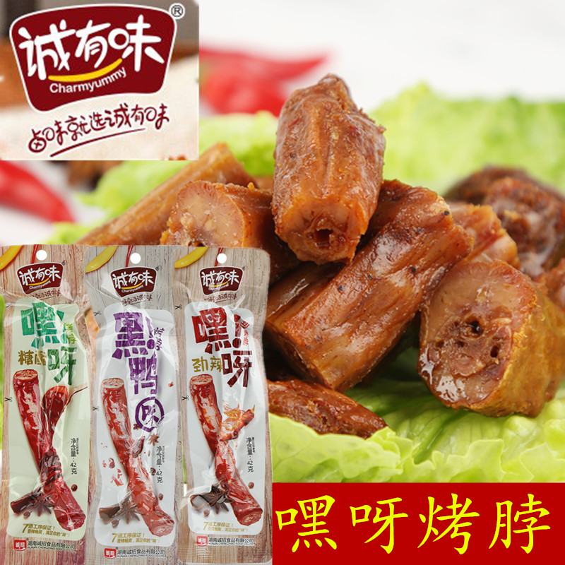 10根装诚有味嘿呀劲爆烤脖卤味糖醋黑鸭香辣鸡脖非风干鸭脖子42克