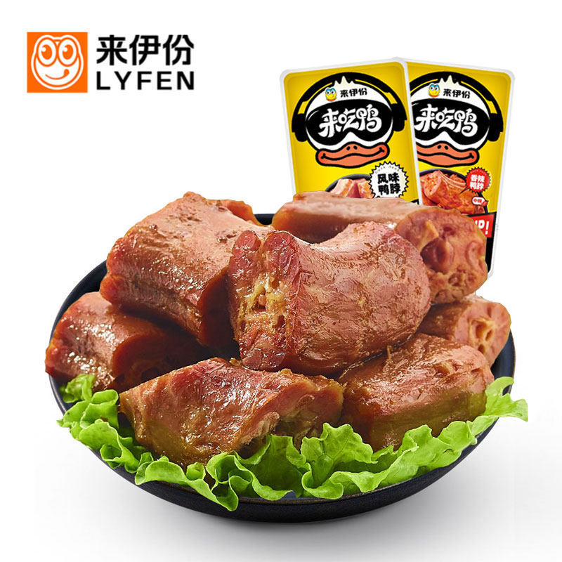 来伊份来吃鸭风味鸭脖500g小包装卤味鸭脖子香辣鸭颈肉来一份零食