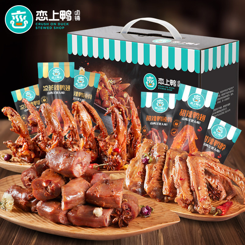麻辣鸭脖子卤味手撕解馋小零食小吃休闲食品充饥熟食肉食类大礼包
