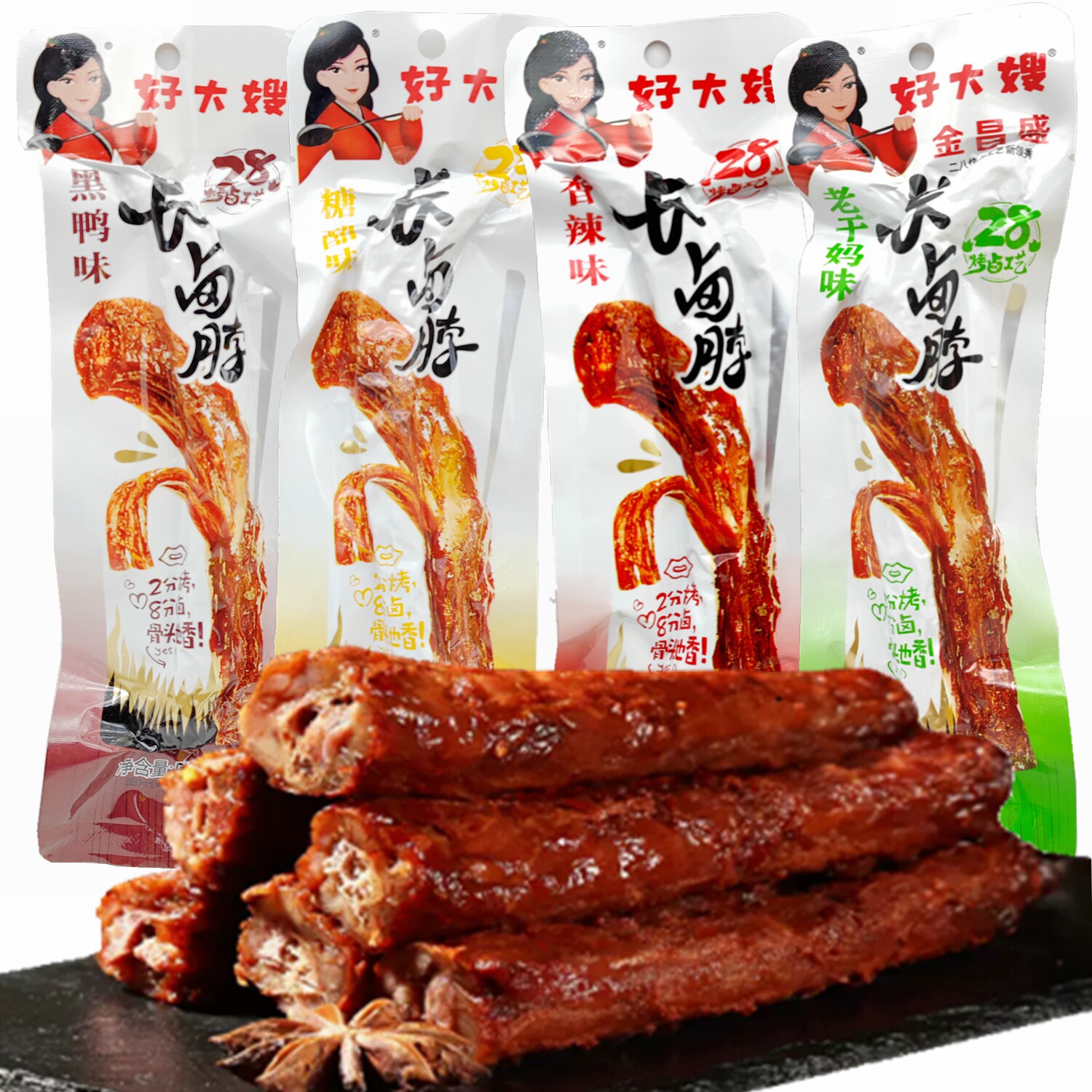 金昌盛糖醋烤辣脖子46g*10根江苏好大嫂黑鸭味脖子休闲麻辣腿零食