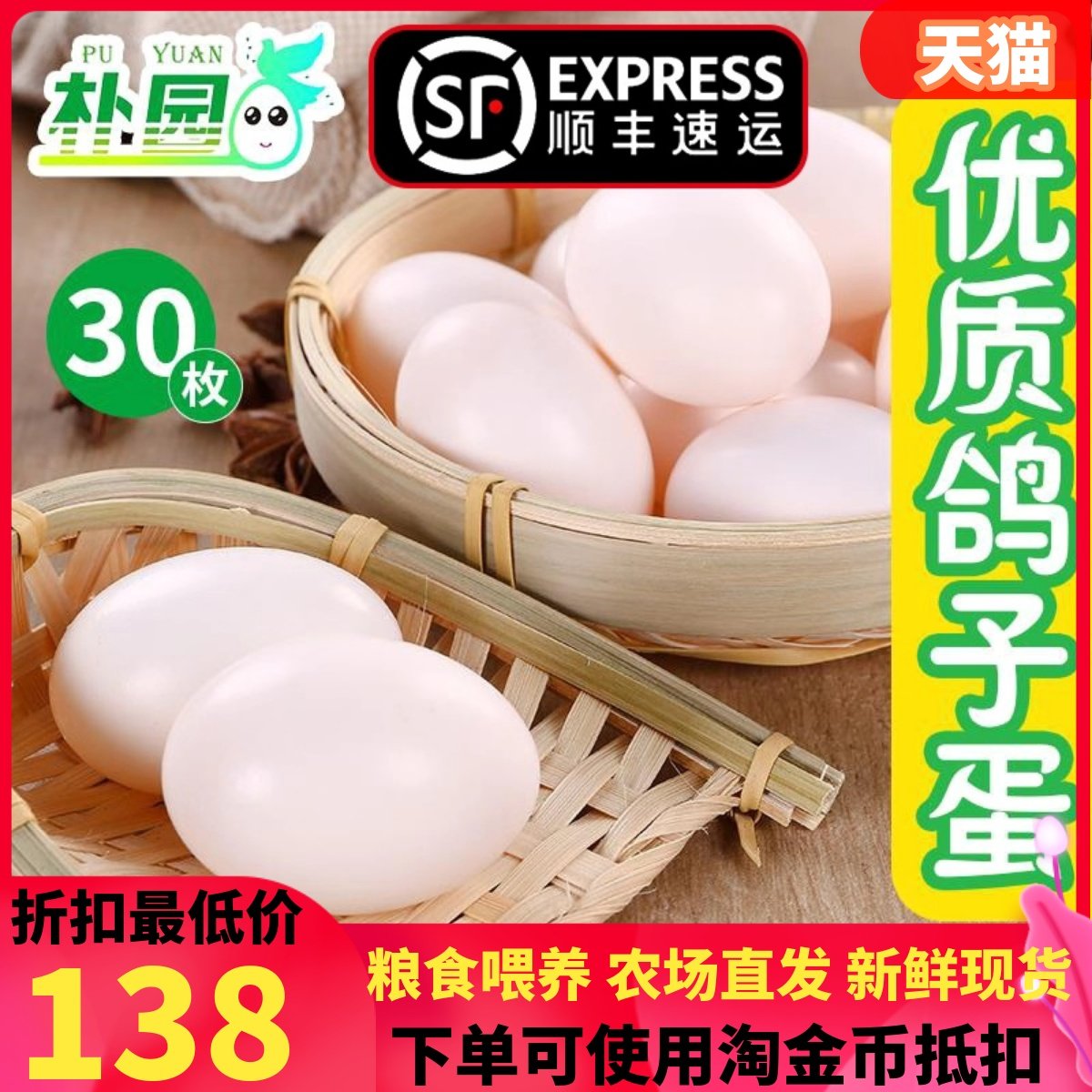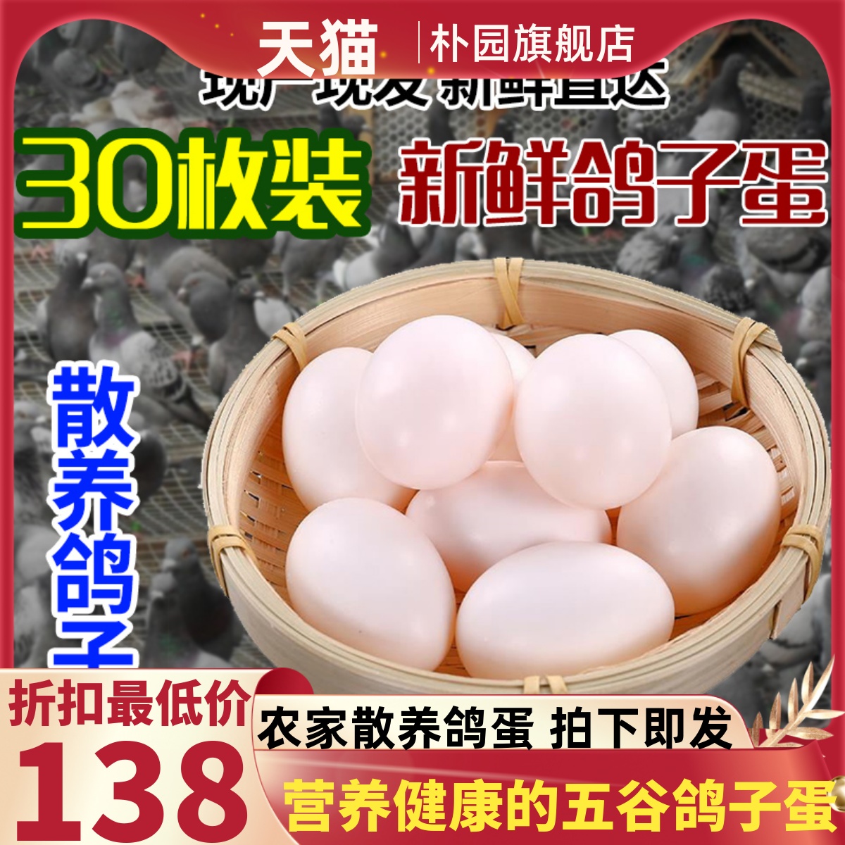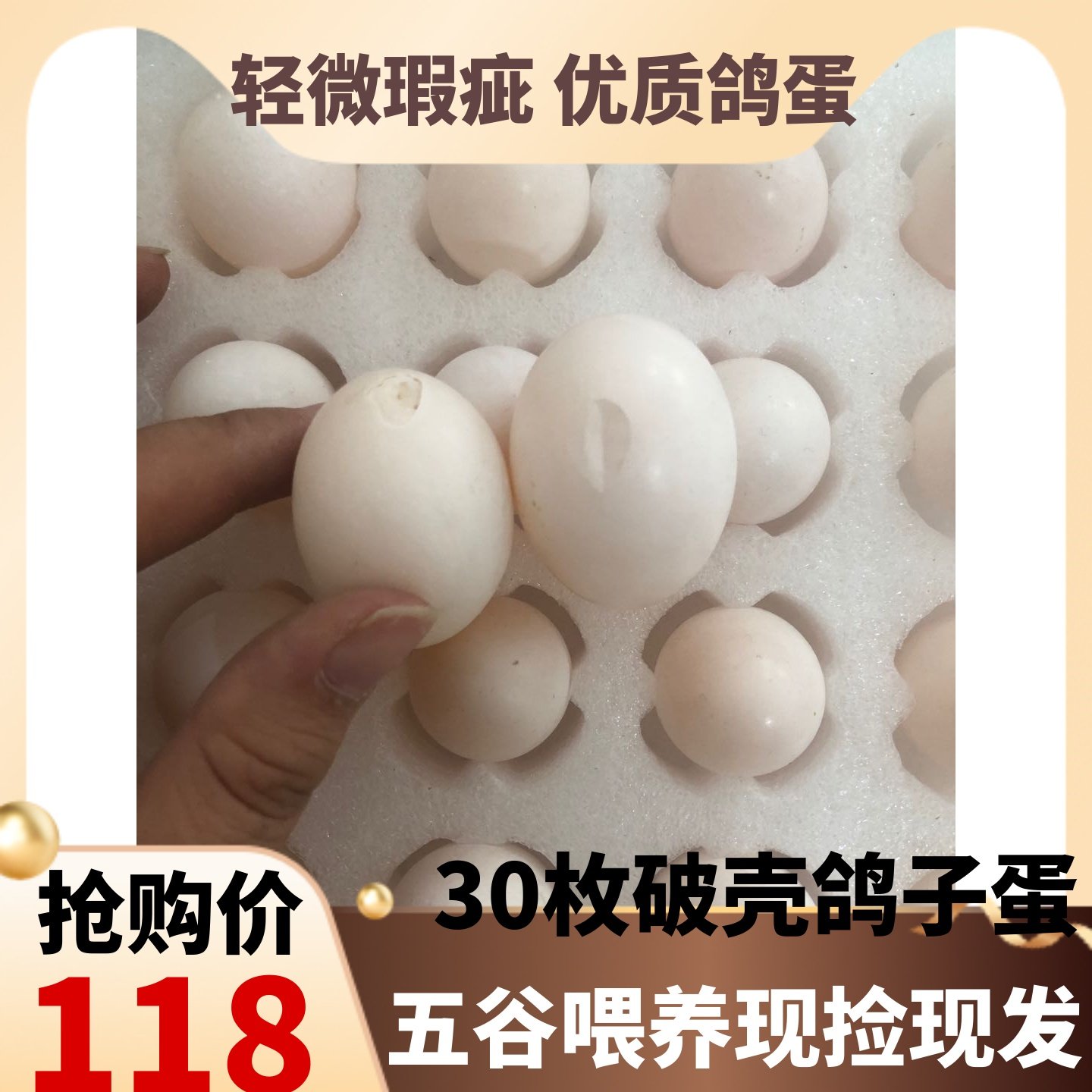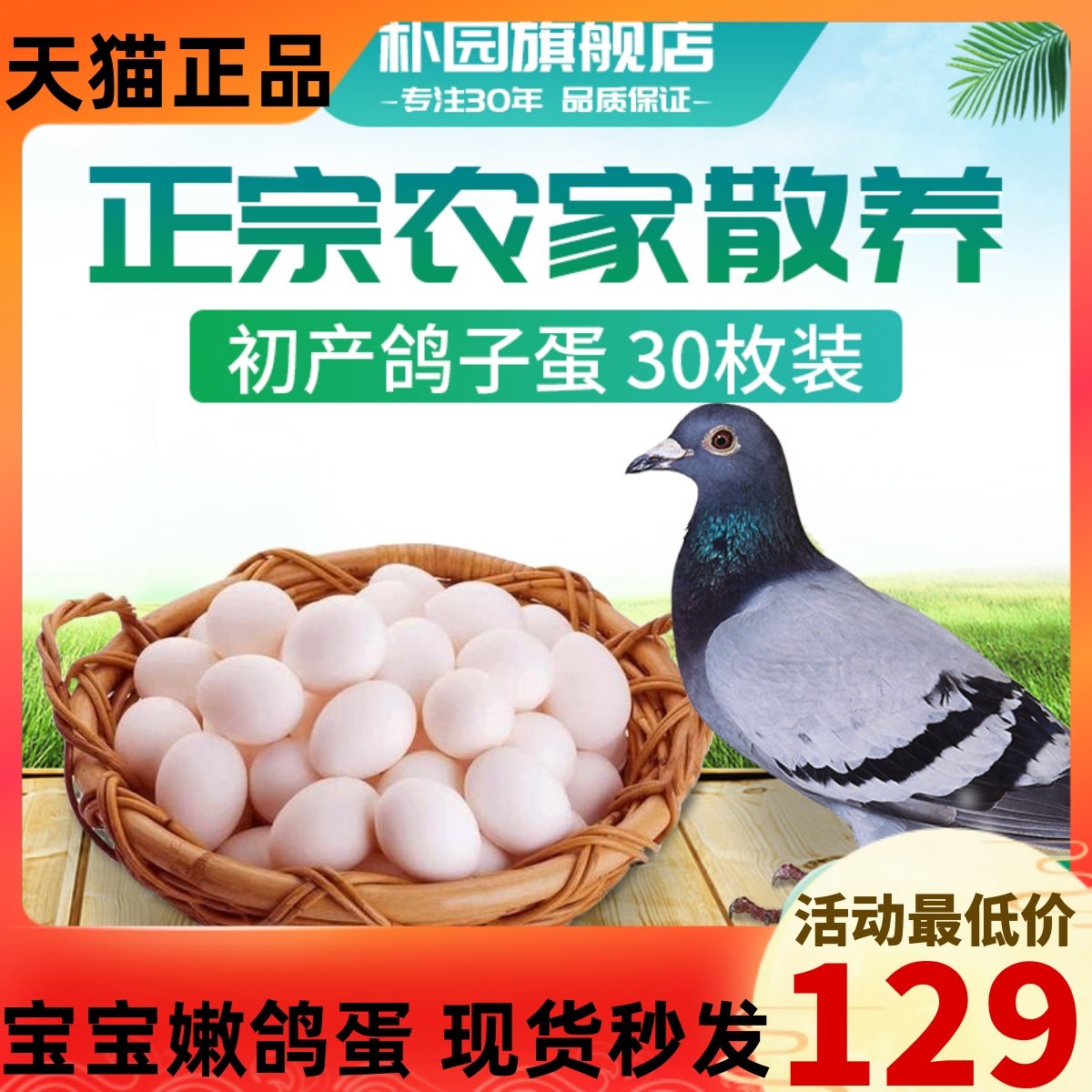 30枚精选当日新鲜鸽子蛋五谷杂粮农家喂养孕妈宝宝辅食土鸽蛋15g