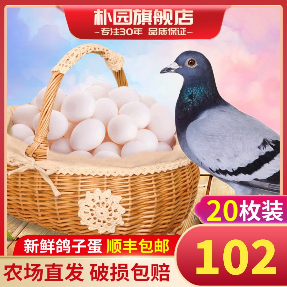 朴园粮食喂养30枚鸽子蛋新鲜顺丰包邮土鸽蛋散养信鸽蛋宝宝鸽蛋