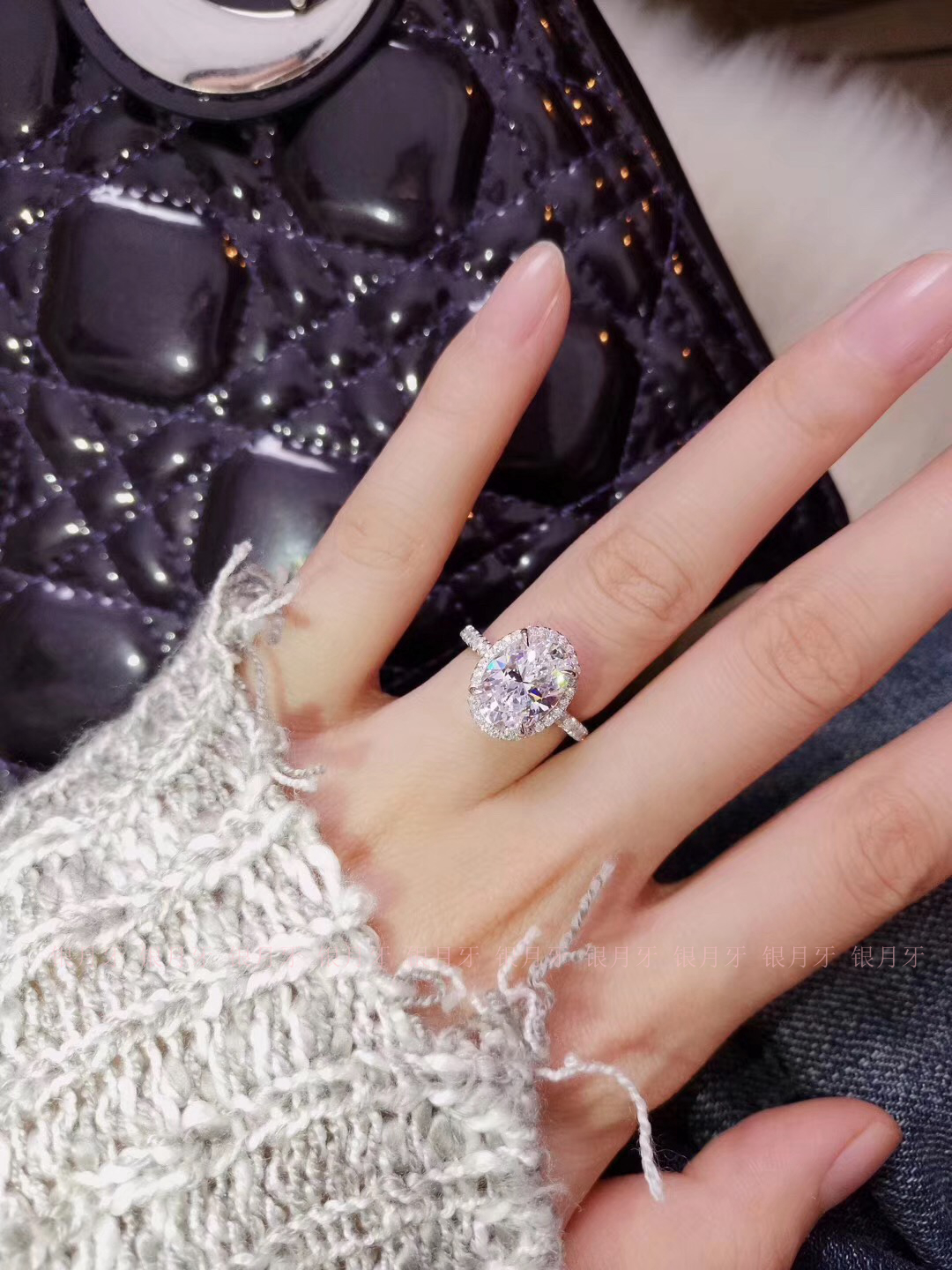 鸽子蛋四爪围镶高碳钻戒指 八心八钻碎钻925纯银3克拉钻戒女包邮