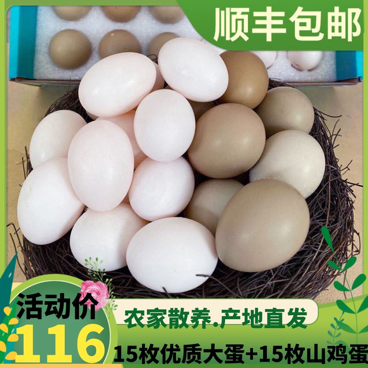 宝宝初生鸽子蛋15枚种鸽蛋+15枚赛鸽蛋装新鲜初产信鸽蛋顺丰包邮