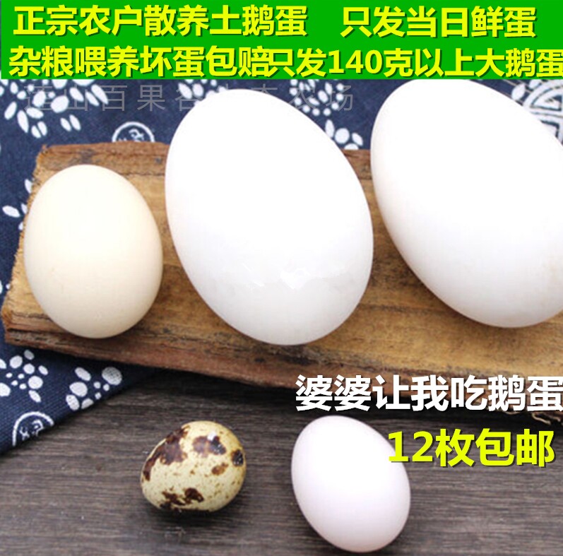 鹅蛋散养新鲜鹅蛋农家正宗土鹅蛋孕妇双黄大鹅蛋12枚120~140g包邮