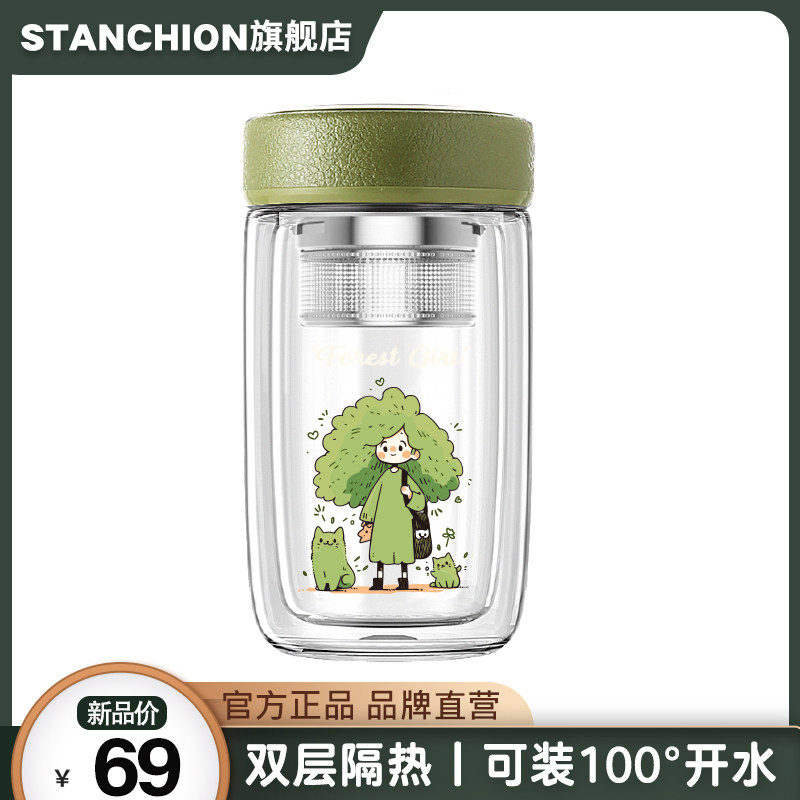 stanchion森系女生双层玻璃杯可爱软萌办公室带茶隔鹅蛋泡茶杯子