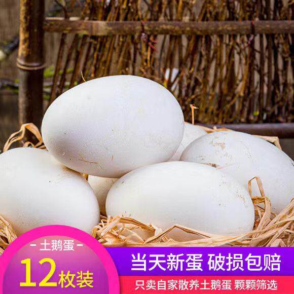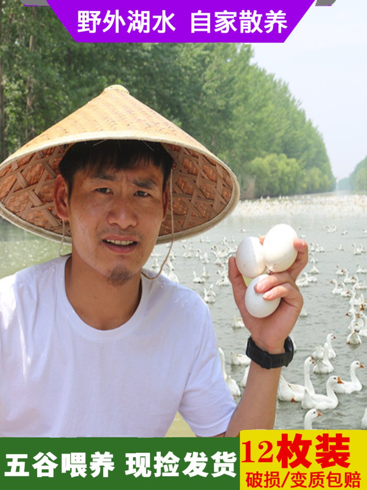 山东正宗土鹅蛋新鲜农家散养鹅蛋当现新鲜大鹅蛋去孕妇批发个12装